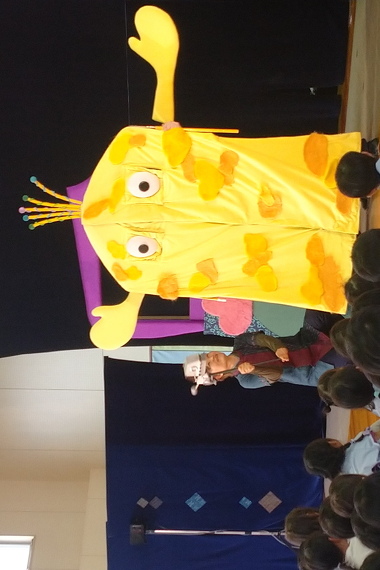 今日は、人形劇団「むすび座」さんが幼稚園に来てくれました。