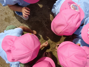 2024年06月14日(金) 日々の出来事 < お知らせ 何してるの? 園生活に慣れてきた3歳児年少さん。 クラスの子の名前を覚えて、誘い合って一緒に遊ぶ姿がよく見られるようになりました。 この日は、砂場で頭をくつっけて、なにやら楽しそう♪ 友だちがやっていることに興味を持ったり、真似したり… みんなで遊ぶ楽しさを感じている様子や笑顔に、私たちも嬉しくなります。