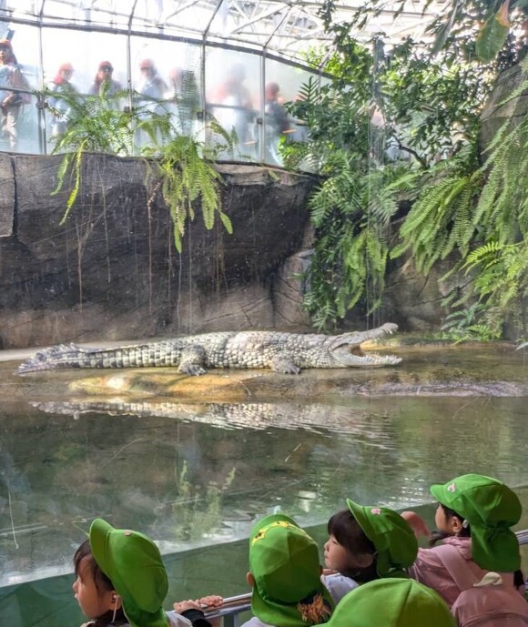 2024年11月26日(火) 日々の出来事 < お知らせ 東山動物園 春は、天白公園での親子遠足。 秋の遠足は、学年ごとに違う行き先へ。 年長児は、毎年、地下鉄を乗り継いで、東山動物園に行きます。 運動会や猿投山登山を終えて、体力のついた5歳児さんなので、 余裕をもって、安全に乗り換えや見学ができました♪ 真っ先に行ったのは、大勢の子が見たいと言っていたコモドオオトカゲ! その後は、ライオンやコアラ、ゾウにペンギン…。 スカイタワーの階段を登った自然動物館では、迫力あるワニを見つつ、 「あれ?動いてないよ」「本物?」と横からも上からも見て確かめていました。