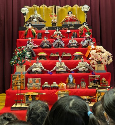 2025年03月04日(火) 日々の出来事 < お知らせ ♪あかりをつけましょ ぼんぼりに♪ 桃の節句。 女の子の健やかな成長を願って、原幼稚園でもお雛様を飾りました。 お内裏様とお雛様、三人官女に五人囃子などの人形や、 屏風や御所車などのお道具の名前や役割を、先生から聞いた子どもたち。 きらきらの珍しい飾りや人形に、興味津々。 みんなで「うれしいひなまつり」の歌を歌って、ひなまつりをお祝いしました。