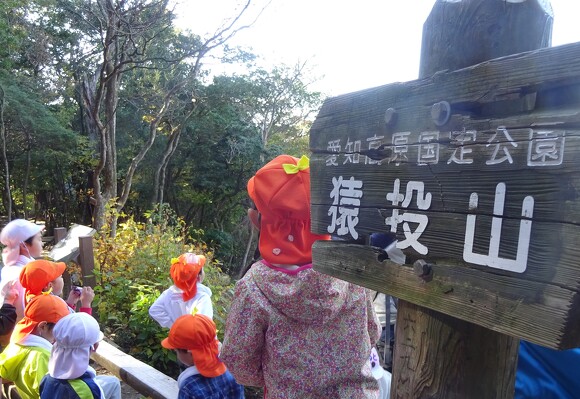 2020年11月11日(水) 日々の出来事 < お知らせ 猿投山登山 10月27日、10月30日、11月5日各日晴天の下、 年長児はクラスごとに猿投山に登りました。 運動会の練習などを通して体力のついた年長さん。 綺麗な景色を見て歓声を上げたり、 てっぺんで「ヤッホー」と叫んだり、 声を合わせて歌を歌ったりして、 みんな元気に山頂まで登ることができました。