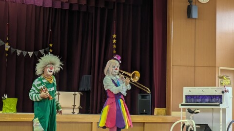 オーバートーンのドタバタコメディ-《大道芸ショー》6月24日(金)、遊戯室で、PTA主催行事が開催されました。 今年は『オーバートーン』さん♪ クラウンの♪カノンちゃんと潤くん♪の動きに、子どもたちは始めから魅了されっぱなし‼ おとぼけパフォーマンスで大笑いし... 続きを読む