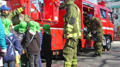 2月7日(火)、年長児さんが天白消防署に見学に行きました。 はしご車や救急車についての説明を聞いたり、運転席に乗せてもらったりしました。 「消防士さんの制服を着ることができて嬉しかった!」と喜んだり、 救...