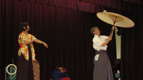 7月12日(木)、『TEAMパフォーマンスラボ』かさかしげのおふたりが 伝統芸能の太神楽(だいかぐら)を見せてくださいました。 傘回しに皿回し、水を使ったバランス芸・・・。 退室の際には、希望者は全員、お獅子に頭を...